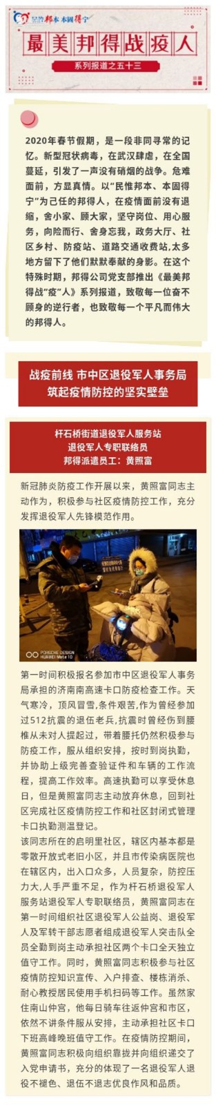 最美邦得戰(zhàn)“疫”人—— 系列報道之(五十三)