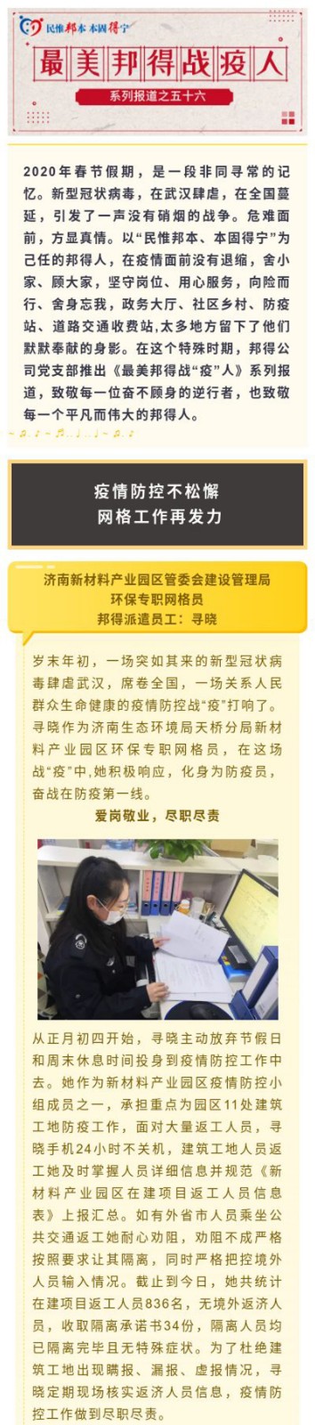最美邦得戰(zhàn)“疫”人—— 系列報(bào)道之(五十六)