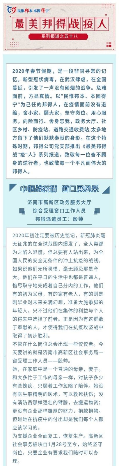 最美邦得戰(zhàn)“疫”人—— 系列報道之(五十八)