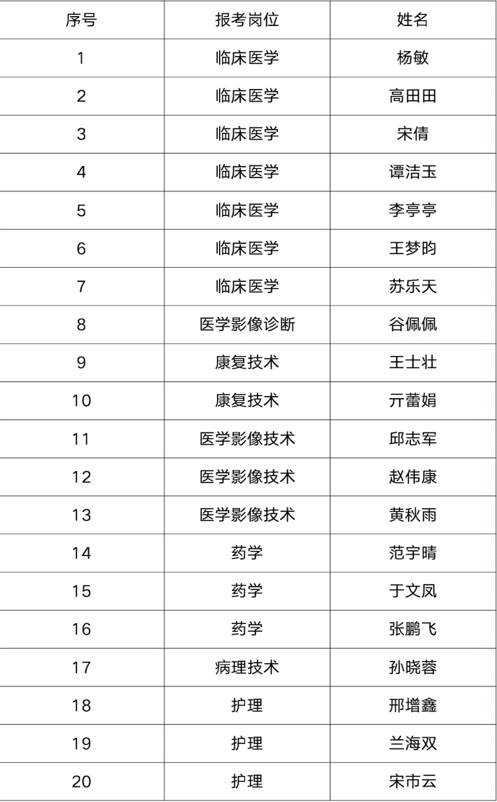 人員擬聘用人員名單的公示及體檢通知